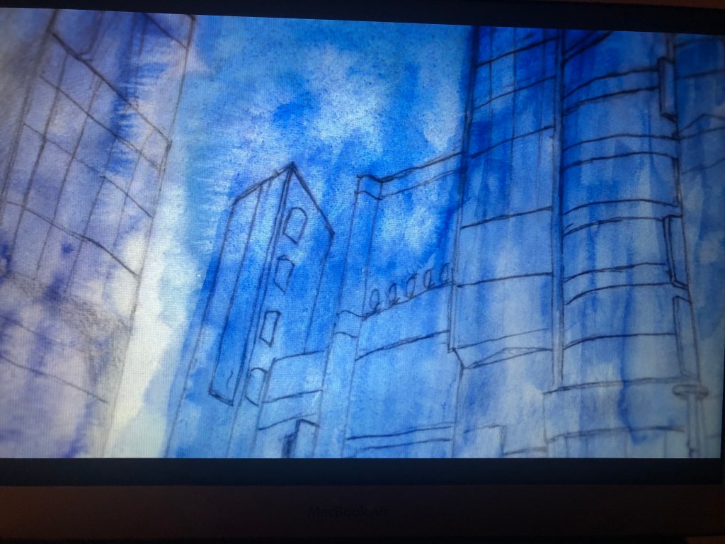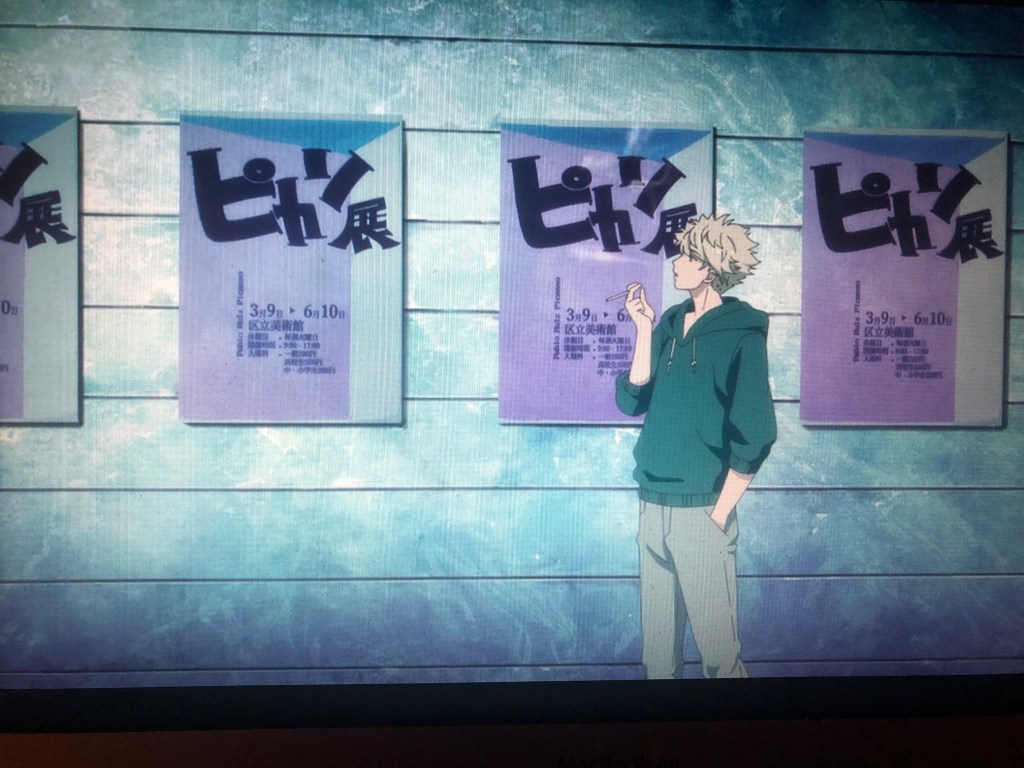 So this week, me and fellow blogger Paige Drews watched the pilot episode of the Netflix original anime, Blue Period. Beforehand, we talked extensively about McCloud’s ideas and how they can be connected with anime. We started by focusing on the sections that highlighted Japanese Comics or Manga as a starting point. Then, once we knew what styles of McCloud to look for, we watched the episode together with screen share. Here we could stop the episode and talk about what we both saw in that moment. Paige has a background in actually drawing Manga, as well as animation. Her unique perspective was something that allowed us to create a unique discourse, as I had taken art classes that taught me the basics of a lot of McCloud, and my vast intertextuality with other Manga and Anime allowed me to easily find connections to art styles! The first image we tackled was at the timestamp 5:28